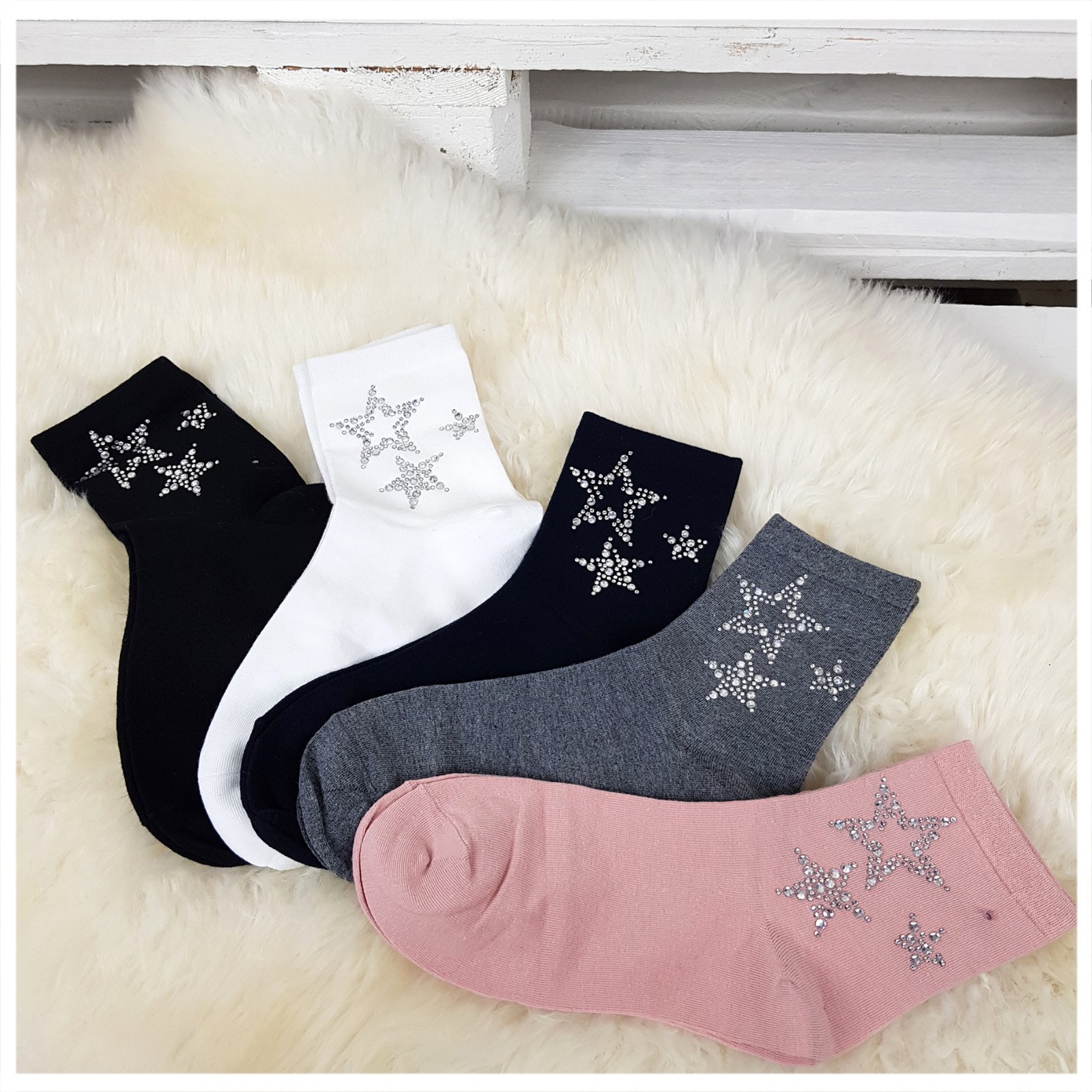 DAMEN BLOGGER SOCKEN UNI LUX Elegante Glitzer-Strass-Sterne Größe 36-41 TOP NEW | eBay