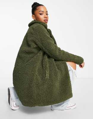 Noisy May gabi teddy coat in olive