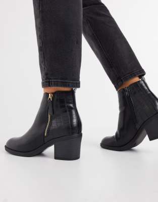 Schuh – Amy – Schwarze Ankle-Boots mit Reißverschluss und mittelhohem Absatz