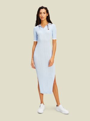 Crest Ribbed Polo Jumper Dress | BLUE
