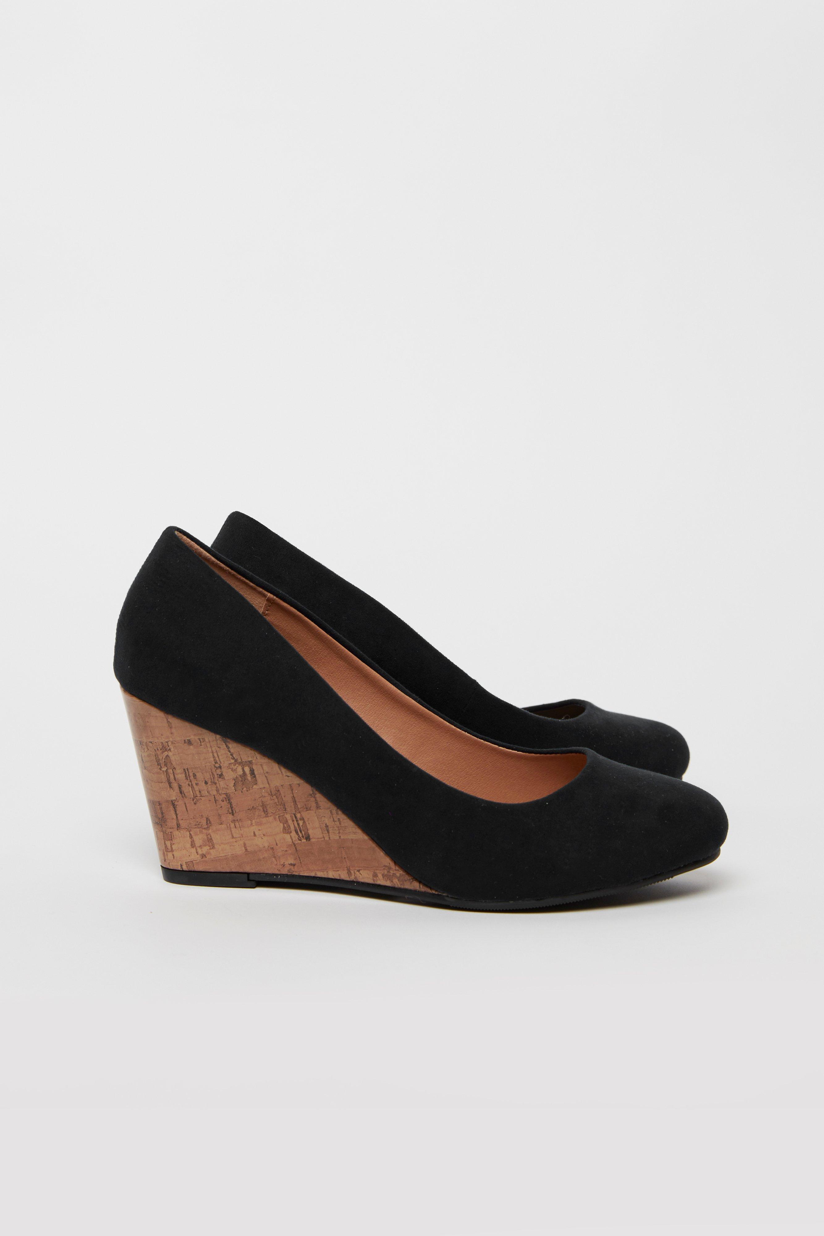 WIDE FIT Black Wedge Heeled Shoes