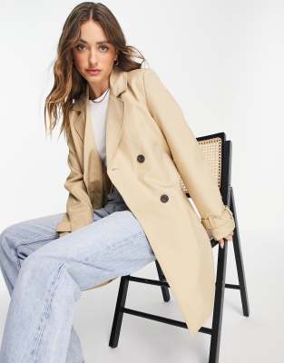 Vero Moda longline belted trench coat in stone