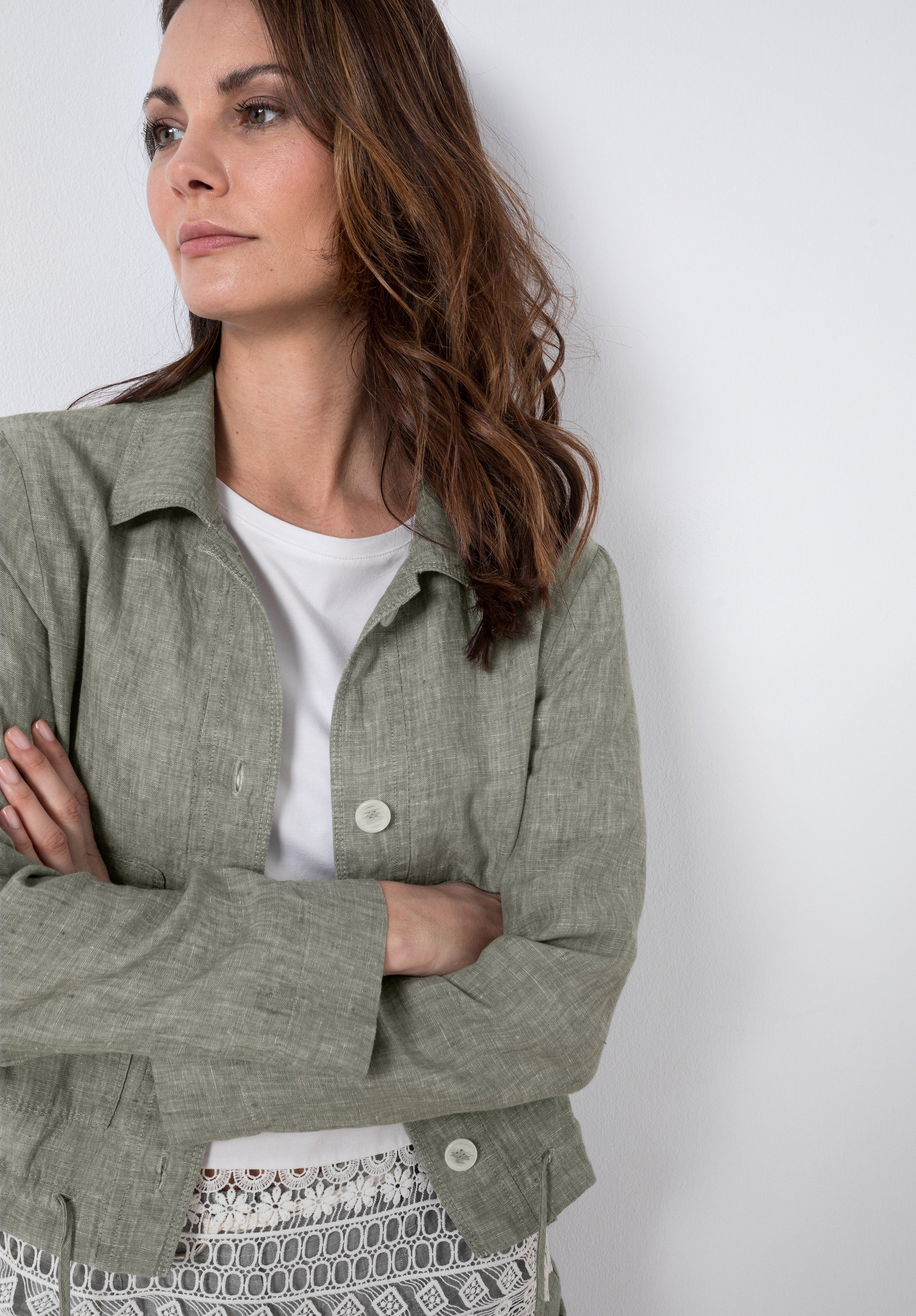 KURZE LEINENJACKE von Sarah Pacini in khaki aus Leinen